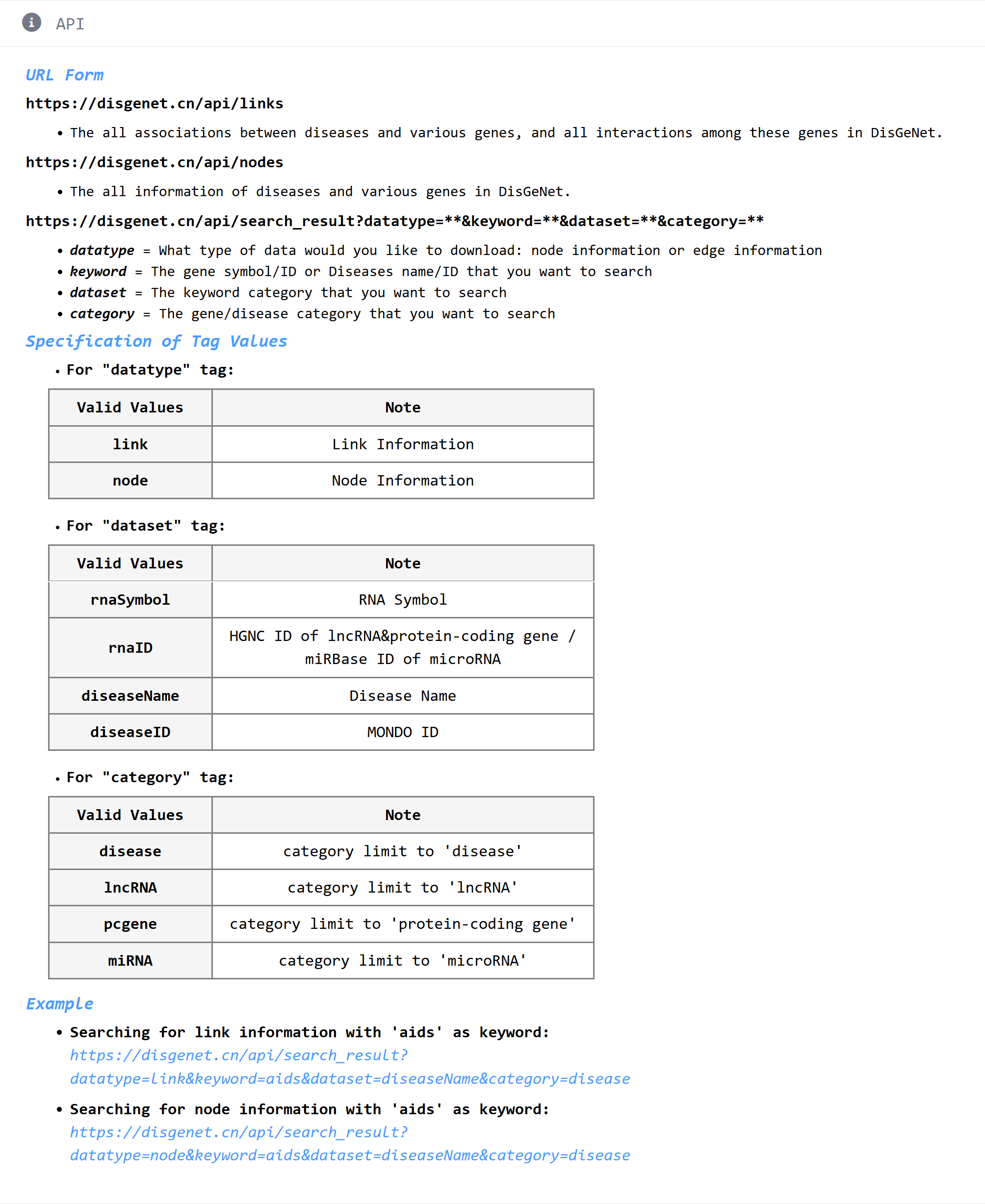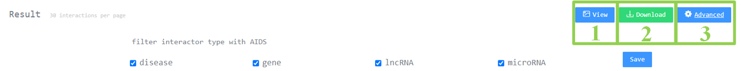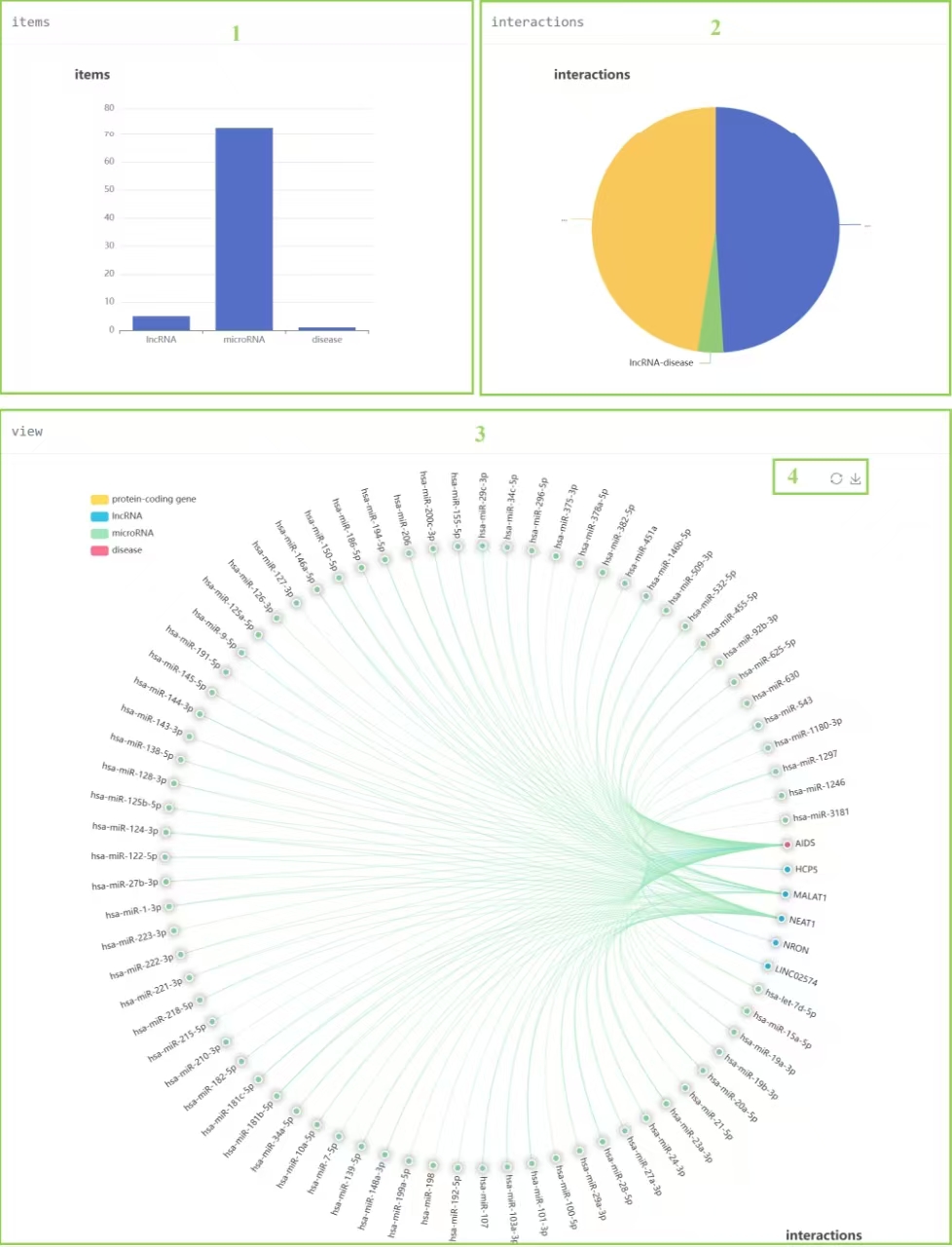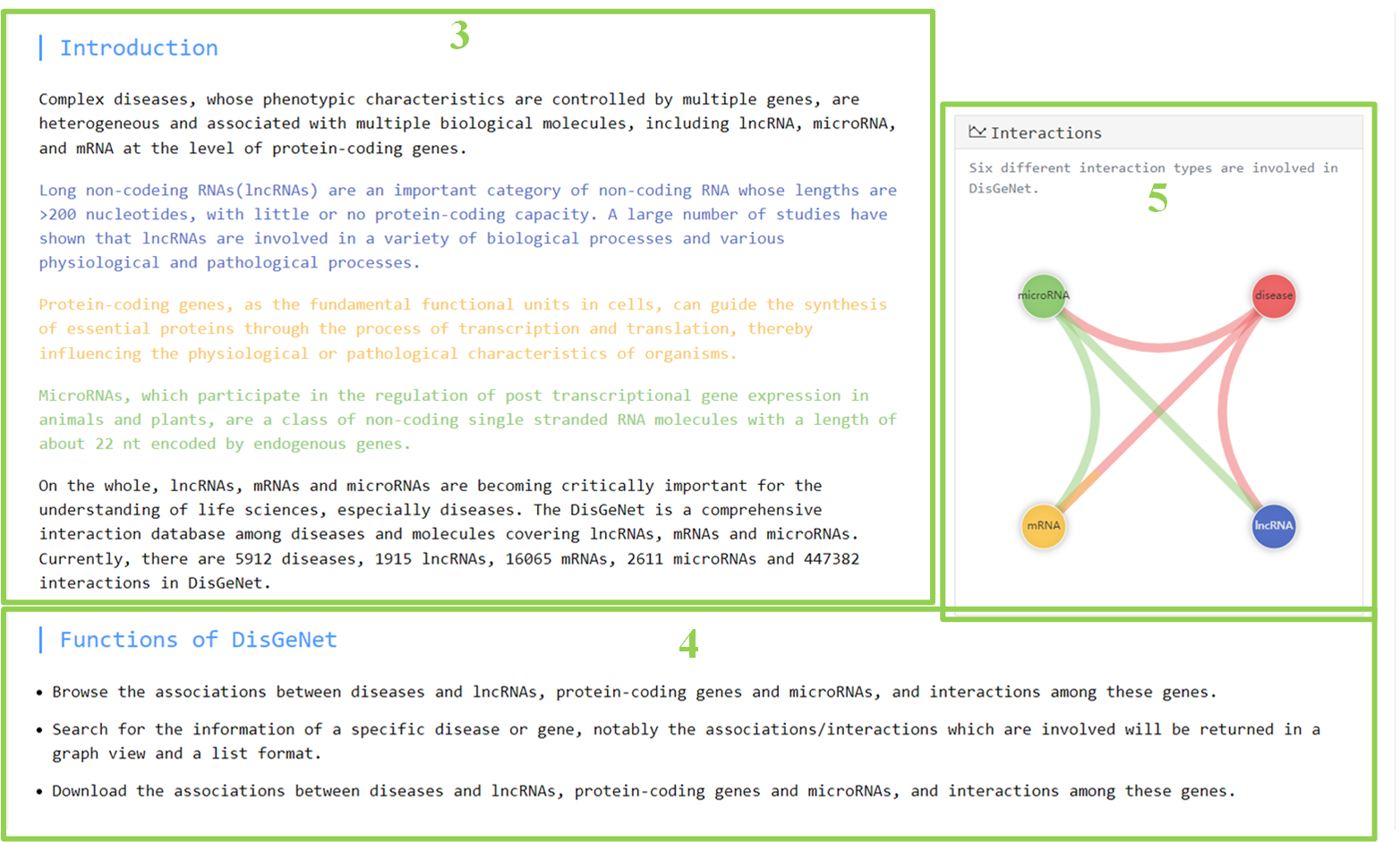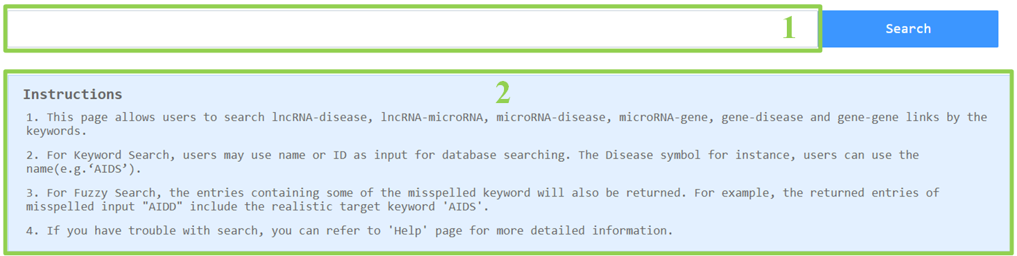 2.1 Input the keyword for the disease, lncRNA, microRNA or mRNA.