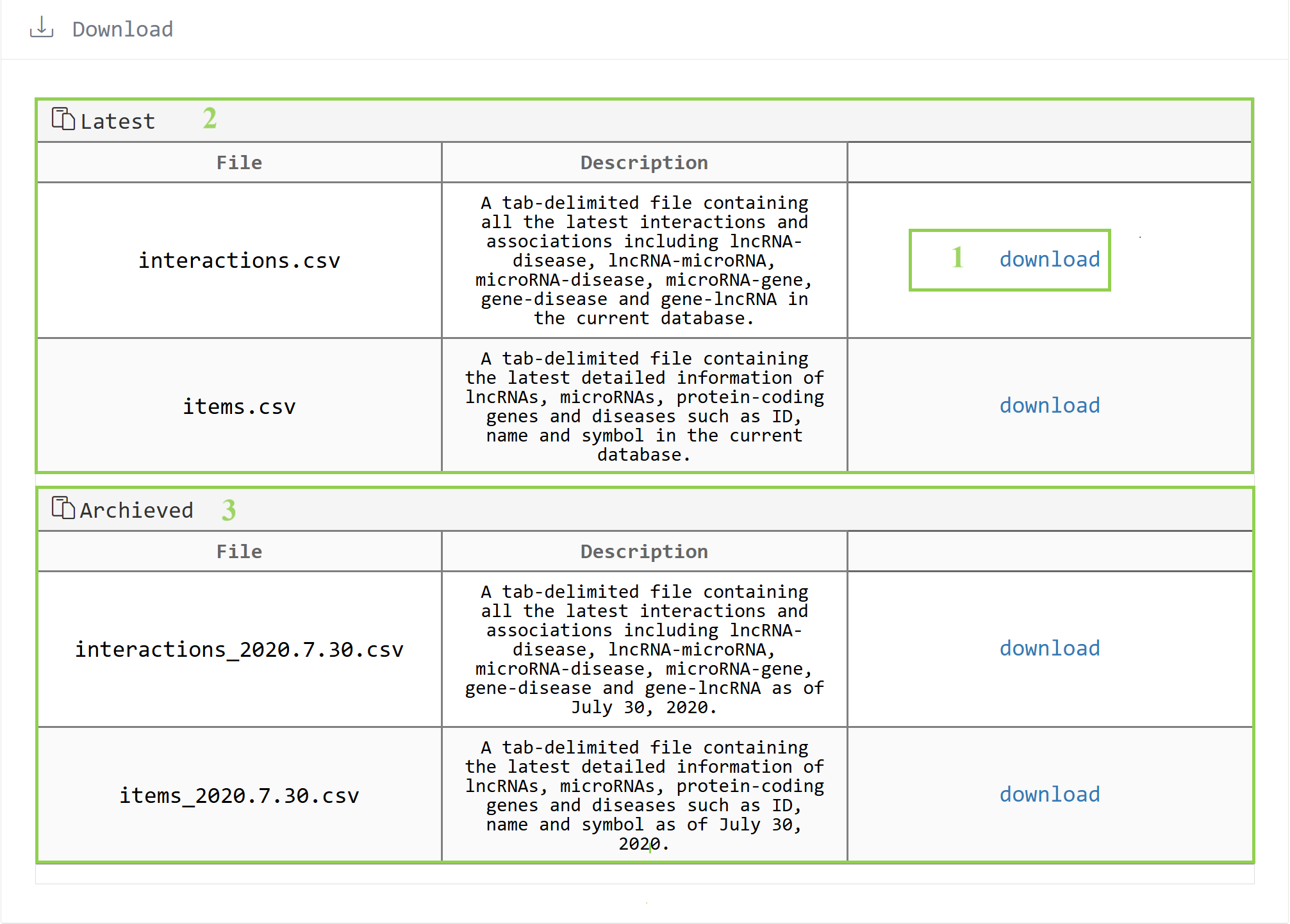 The files we can download that contain interactions or items are divided into two categories by time point, the latest file and the archived file.