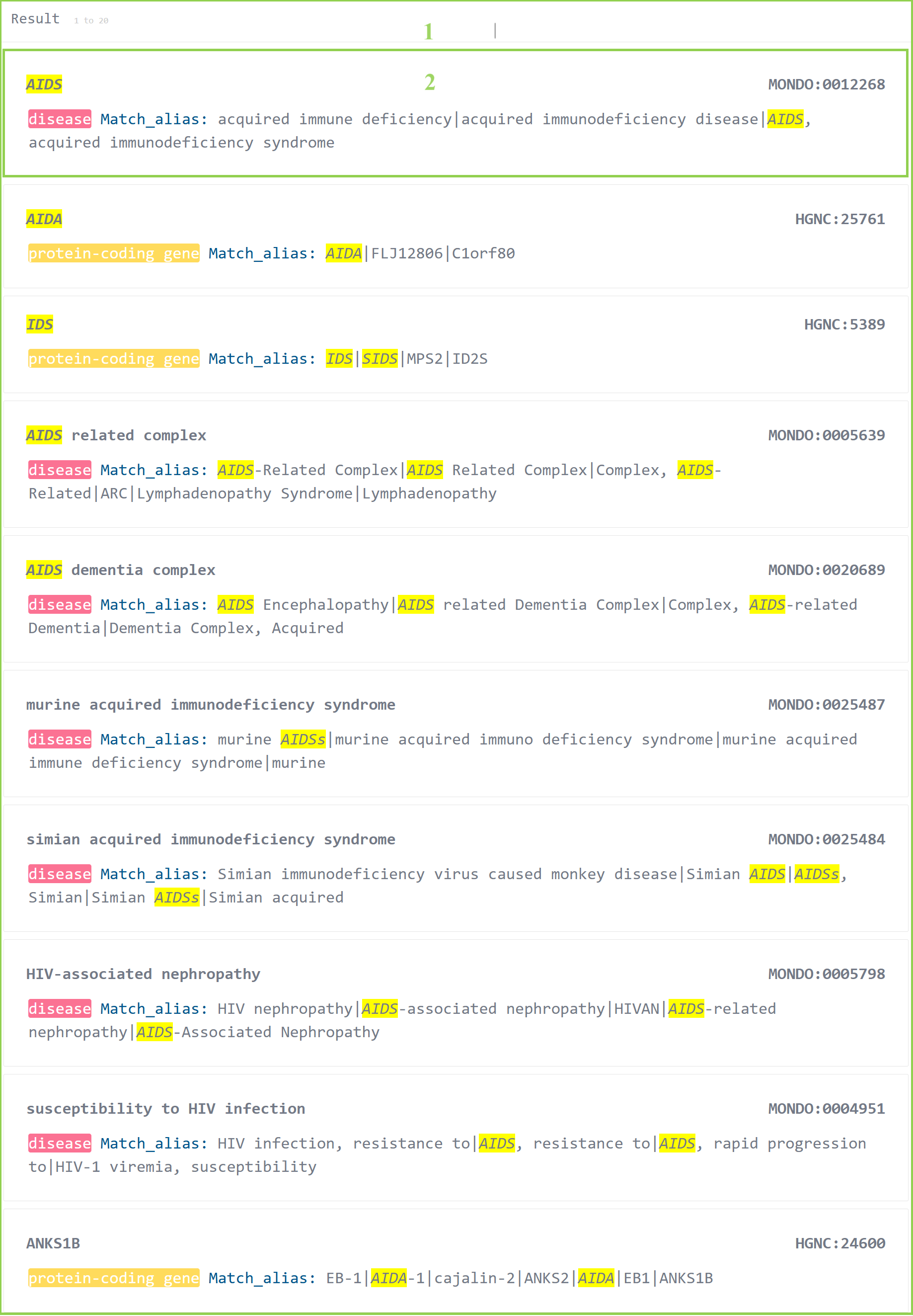 The search engine will support the fuzzy search, ignoring the typo in the inputs and providing the similar entries associated with the user’s input. And to prevent the abuse of fuzzy search, only the top 20 most similar items are displayed in the search results.
